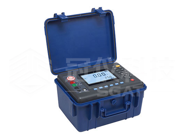 SGAT8805绝缘电阻测试仪又名兆欧表、高压绝缘电阻测试仪等,用于绝缘电阻的测试。本仪表具有LCD大屏幕灰白背光显示、数据存储、数据查阅、报警、自动关机等功能。同时还具备测量直流电压、交流电压、吸收比和极化指数功能。整机美观高档,量程宽广,分辨率高,操作便捷,携带方便,准确、可靠、性能稳定,抗干扰能力强。而且具有防震、防尘、防潮结构,是电信、电力、气象、机房、油田、机电安装和维修以及利用电力作为工业动力或能源的工业企业部门常用而必不可少的仪表。它适用于测量各种绝缘材料的电阻值及变压器、电机、电缆及电器设备等的绝缘电阻。同时带有步进调节电压功能可以输出多种不同电压等级(如15KV机型可以产生12KV等级,使用范围更广泛)。