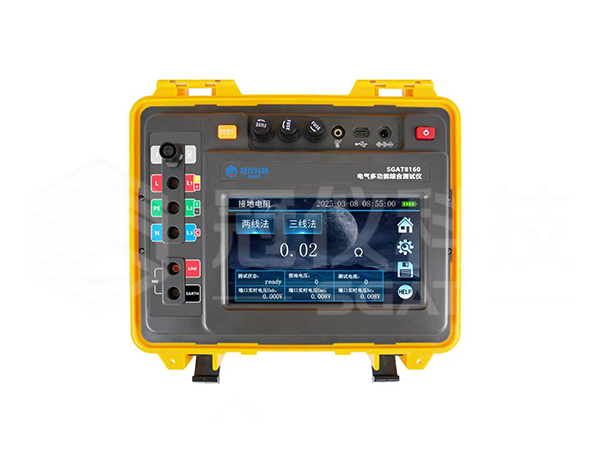 SGAT8160电气多功能综合测试仪,采用7寸触摸彩屏,操作简易。可进行接地电阻测试、绝缘电阻测试、直流电阻测试、RCD漏电保护器测试、电气插座检测、电流有效值测试、交流电压测试、相序测试等参数测量;仪表功能更全,准确度更高,性能稳定,操作方便可靠。